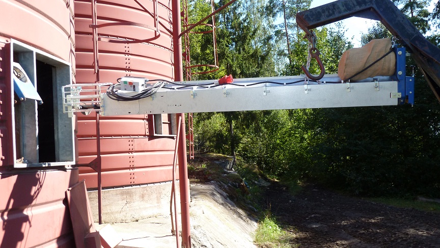 Alkutilanteessa siilonpohjan tyhjennysruuvi on nostettuna noin 30asteen kulmaan purkuruuvin viereen. Kun purkuruuvi on vienyt saatavillaan olevat viljat, niin siilonpohjan tyhjennysruuvi lasketaan viljakasan päälle ja irroitetaan nostovaijerista. |